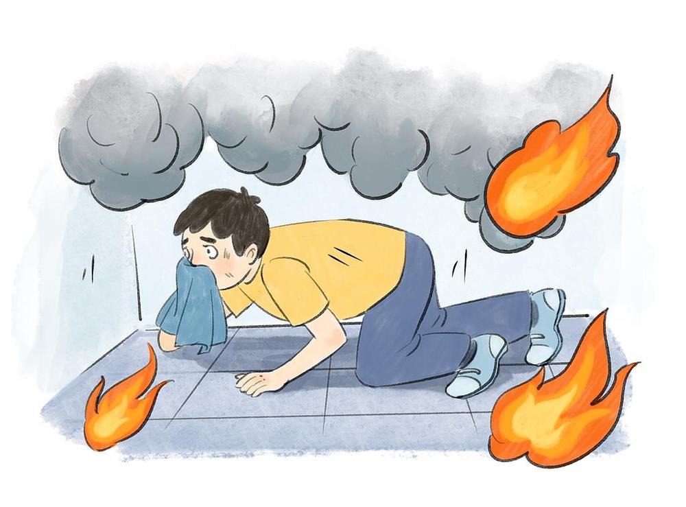 火势大、烟雾浓或楼梯间着火时,待在家中更安全。请关闭房门,用湿毛巾、湿衣物等堵住门缝,阻挡烟雾进入。